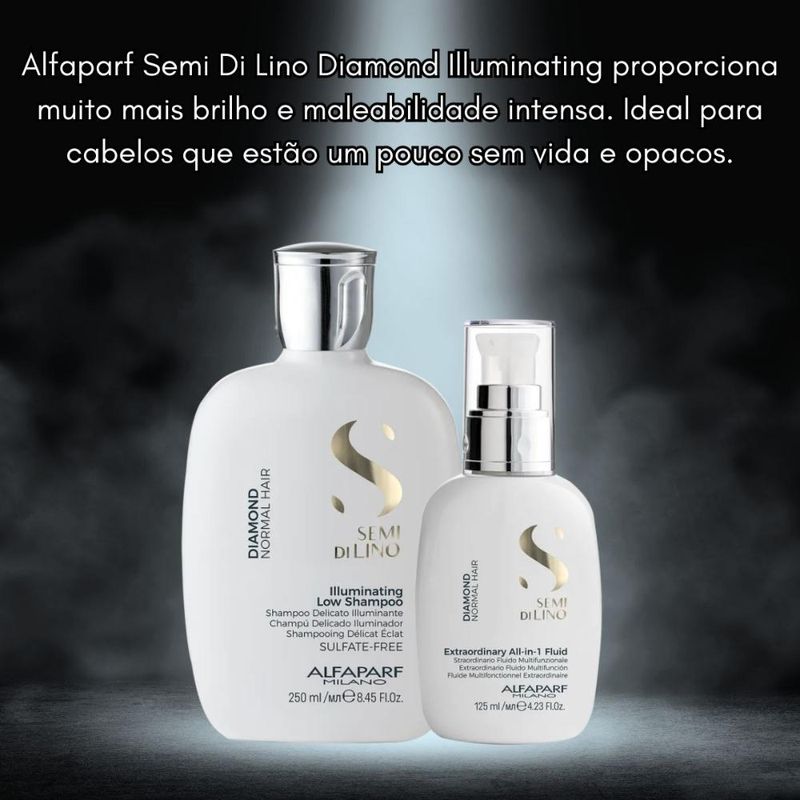 Shampoo sem sulfato para todos os tipos de cabelo. Alfaparf Semi Di Lino Diamond Illuminating Shampoo proporciona muito mais brilho e maleabilidade intensa. Ideal para cabelos que estão um pouco sem vida e opacos.