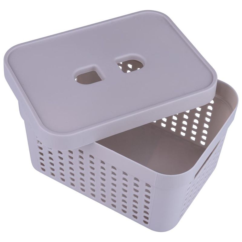 Cesto Organizador com Tampa 2L Rattan LP House 8503FE Bege