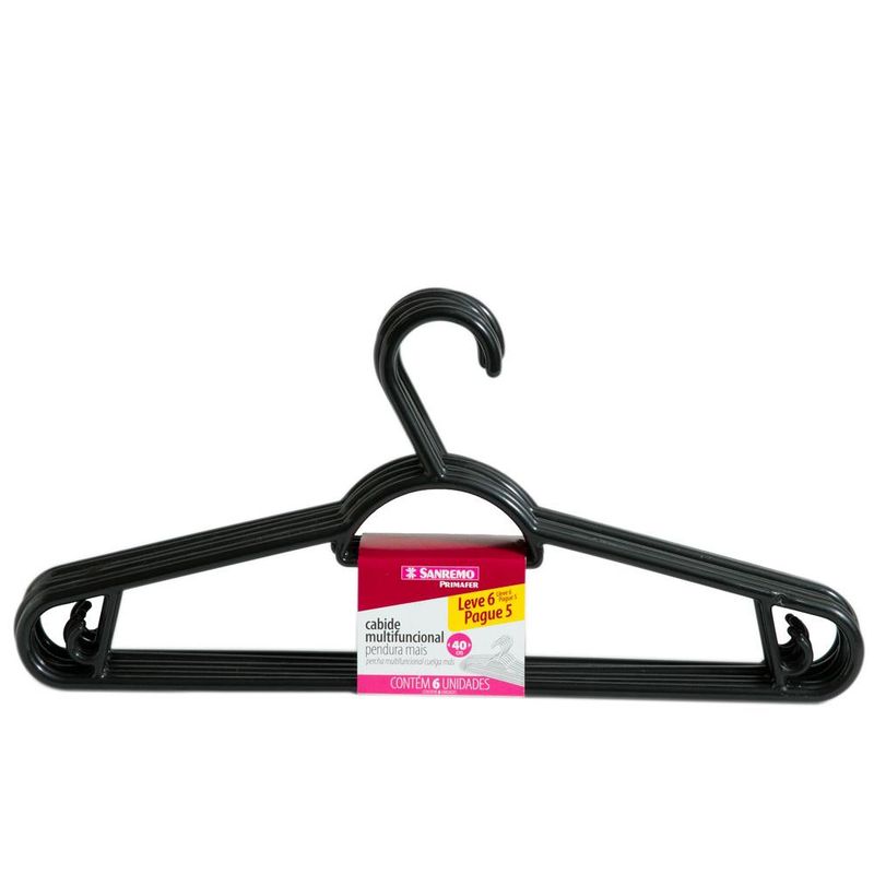 Conjunto 6 Cabides Sanremo Pendura M PR105/68 Preto 1665014