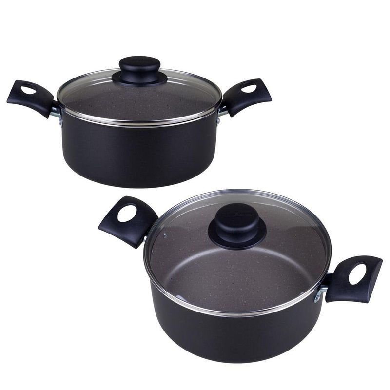 O Conjunto de Panelas Turim da Tramontina é produzida em alumínio com revestimento interno e externo em antiaderente Starflon Max preto 07 peças. Desenvolvidas com corpo de alumínio e revestimento interno e externo de antiaderente Starflon Max, suas peças são essenciais para uso diário e proporcionam um cozimento rápido e uniforme, sem que os alimentos grudem em sua superfície. A caçarola e as panelas vem com tampas de vidro temperado com bordas de aço inox e contam com cabos, alças e pegadores de nylon, que oferecem toda a segurança e conforto que você merece durante o manuseio. O jogo é muito prático e versátil, podendo ser levado à máquina de lavar louças e utilizado nos fogões a gás, elétricos e vitrocerâmicos. O Kit é composta por 2 Caçarolas (18 e 20cm), 2 Panelas (16 e 18cm), 2 Frigideiras (16 e 20cm) e 1 Leiteira (12cm).