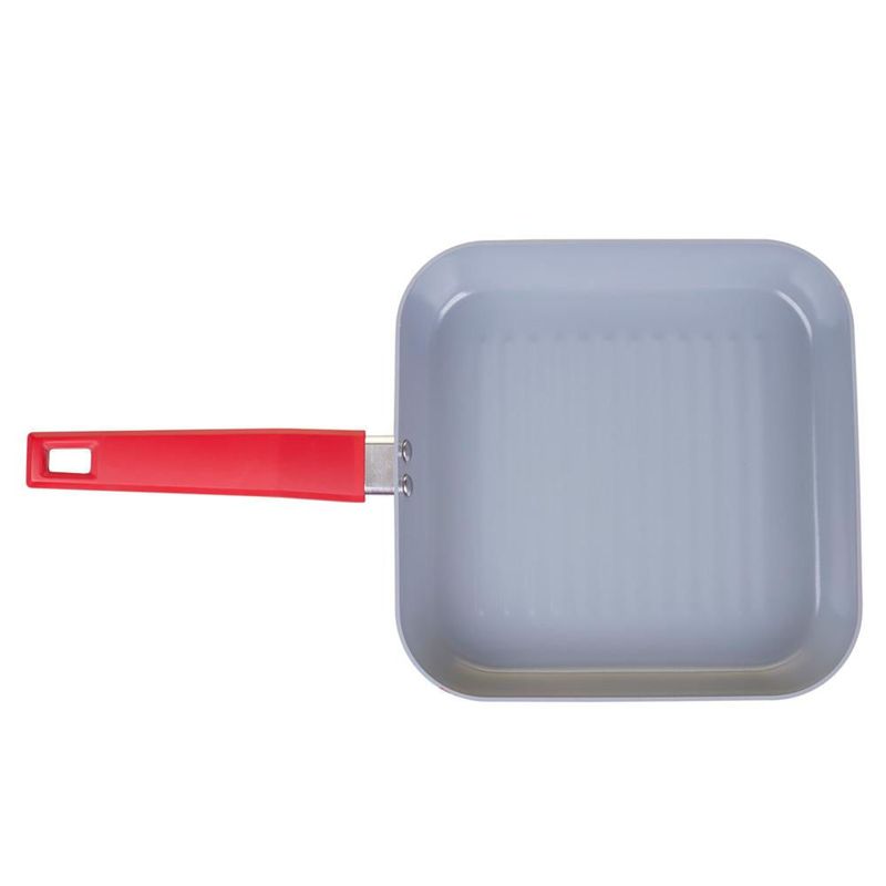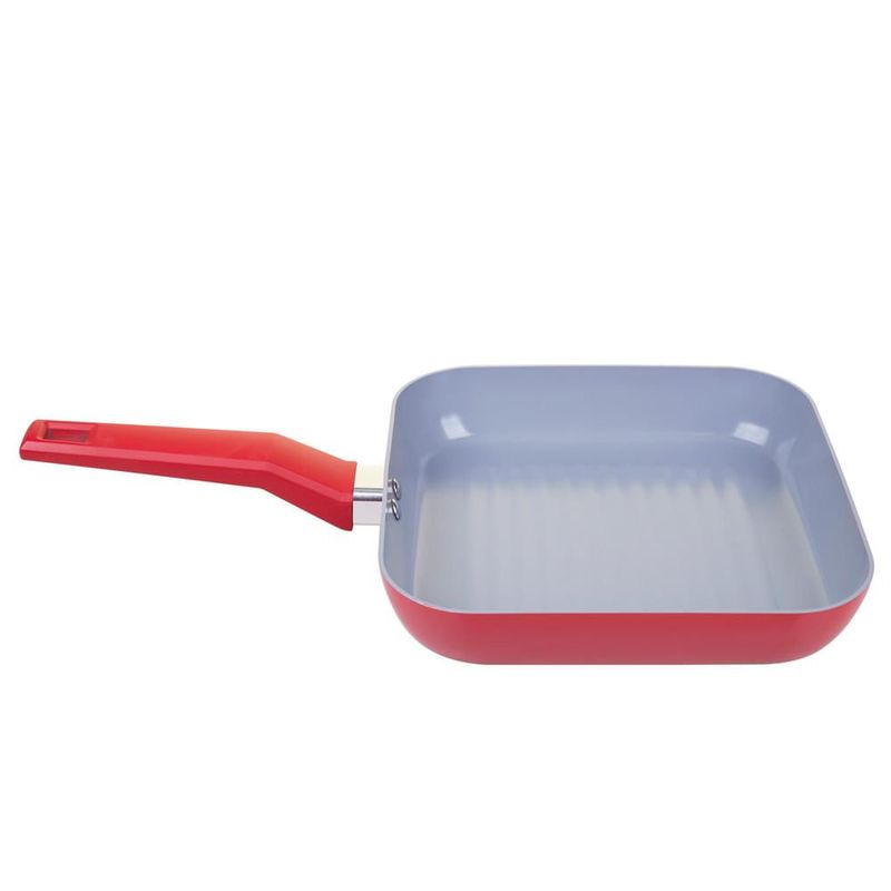 Frigideira Grelha Cerâmica 24cm Quadrada Casa do Chef Vermelha