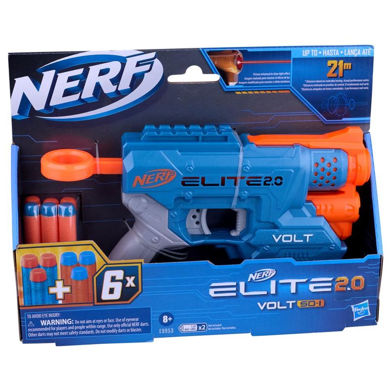 Com o Lançador Nerf Elite 2.0 Volt da Hasbro apresentam recursos de personalização integrados para que se possa utilizar acessórios e sair na frente na aventura Nerf. É hora de montar seu próprio lançador Nerf Elite 2.0 para otimizar sua estratégia de jogo e trazer desempenho tático e flexibilidade a todas as aventuras! O lançador Nerf Elite 2.0 Volt SD-1 possui 2 trilhos táticos para personalizar com acessórios Nerf dependendo da aventura. A mira luminosa incluída facilita mirar em ambientes menos claros, com um alcance de até 4,5 m. Este lançador de lançamentos únicos possui porta-dardos para 2 dardos. Inclui 6 dardos Nerf oficiais. Recomenda-se o uso de óculos. Requer pilhas. Óculos, pilhas e acessórios extra não incluídos.