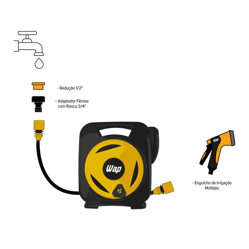 Mangueira com Enrolador e Esguicho Múltiplo WAP GMEEM01