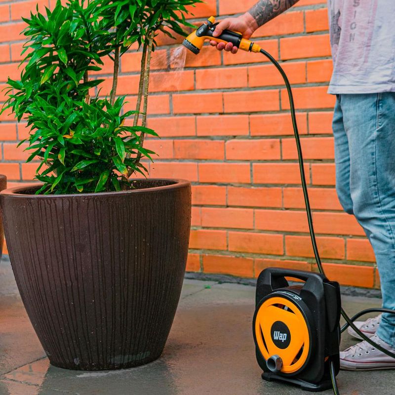 Perfeito para quem quer um produto compacto e eficiente, a Mangueira com Enrolador e Esguicho Múltiplo WAP GMEEM01 é ideal para ter no jardim e áreas externas.