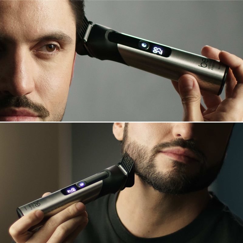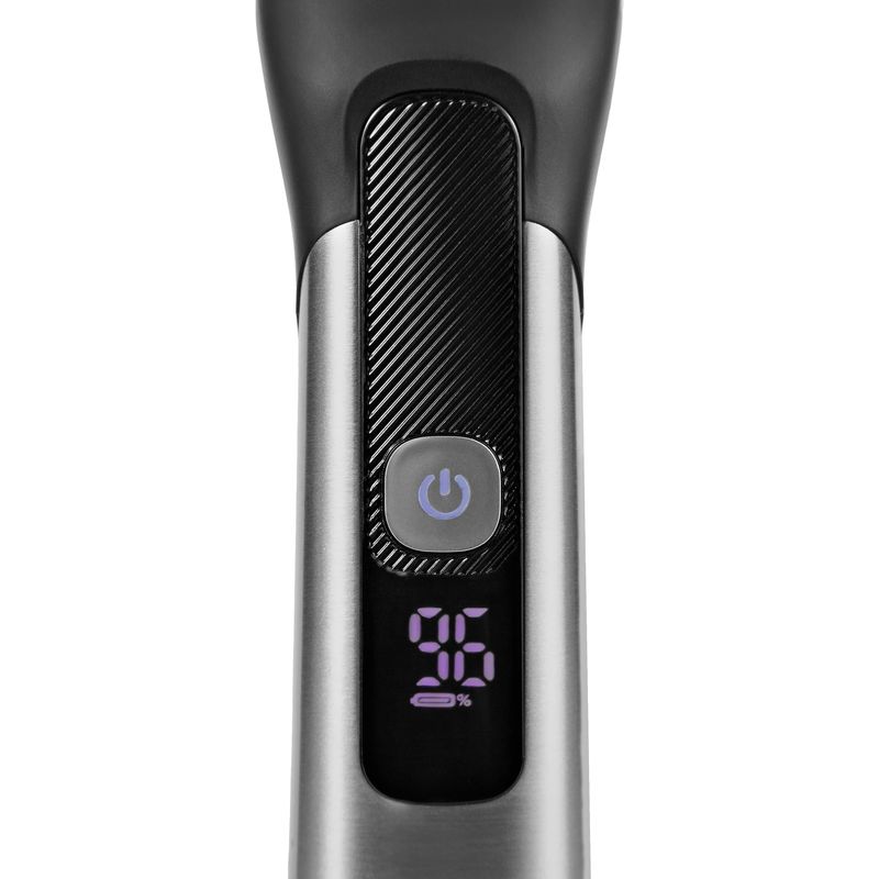Com corpo à prova d’água (IPX7), MaxGroom pode ser usado no banho, na pia ou onde você achar mais conveniente, sem riscos. Seu display em LED oferece controle total, indicando a carga da bateria e o status da trava de segurança.