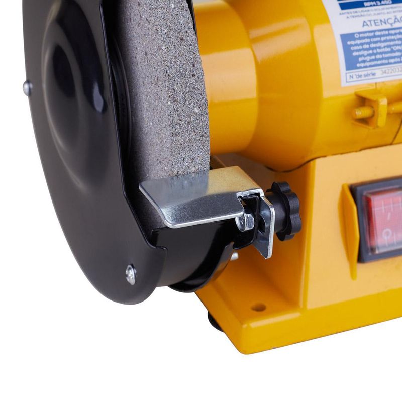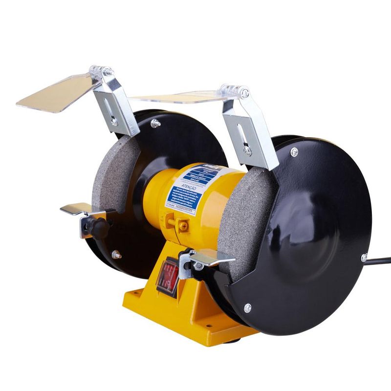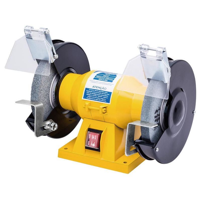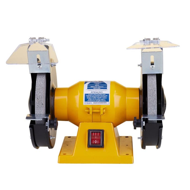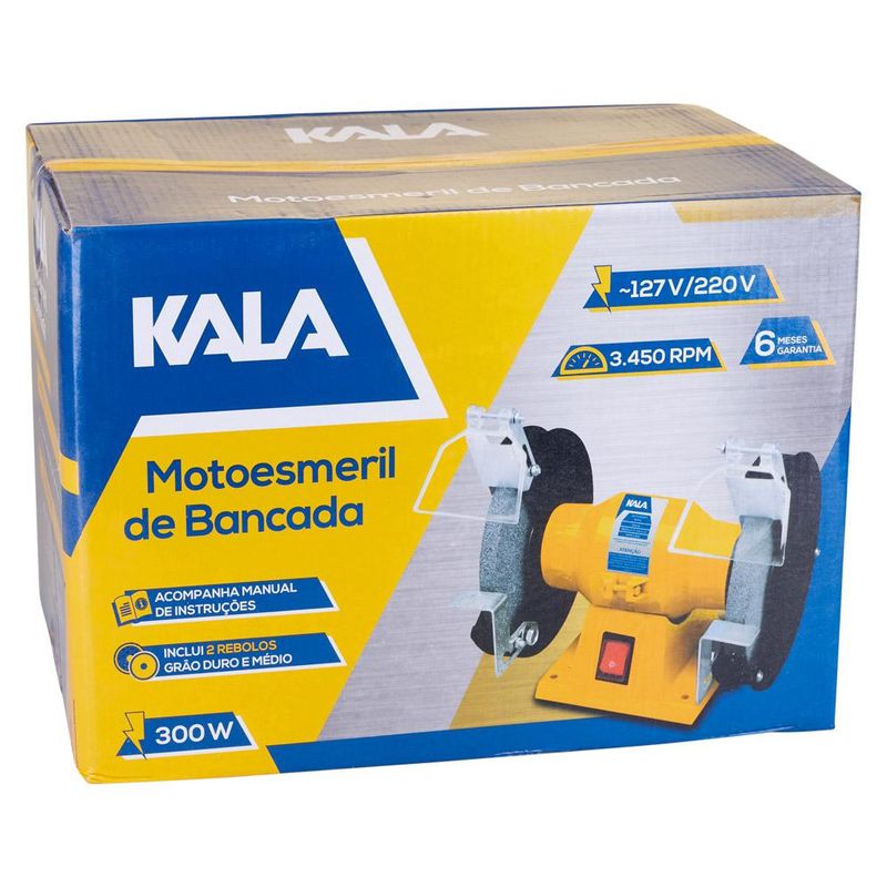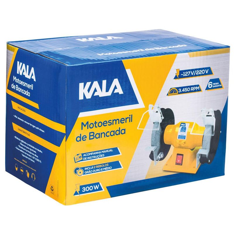 Tenha uma ferramenta de inúmeras utilidades para o seu dia-a-dia! Esta moto esmeril Kala 342203 de 6” funciona com 400W de potência, é compatível com disco de 152mm e atinge 3450 rotações por minuto para desbastar, polir e afiar ferramentas, metais e outros materiais com máxima precisão. A caixa de motor alta permite esmerilhar objetos compridos através das rodas do próprio aparelho. Sua utilização é ideal para oficinas em geral, por artesãos, chaveiros, cutelaria, serralherias, entre outras aplicações. Para garantir sua proteção durante o manuseio, acompanha escudos para proteção dos olhos.