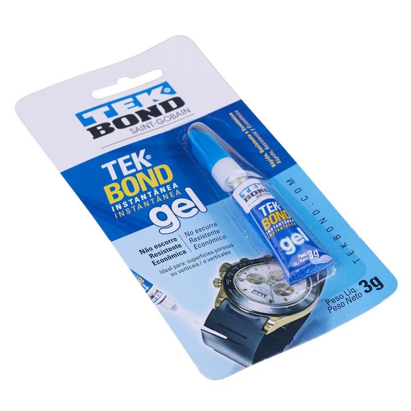 A Super Cola Gel da Tekbond é uma cola de uso geral. Adere a uma ampla variedade de metais, plásticos, borrachas, madeira, porcelana, couro e outros materiais. É ideal para adesão em materiais porosos e com grandes folgas. Por não escorrer, pode ser aplicado na posição vertical, permitindo melhor posicionamento para colagem do objeto.