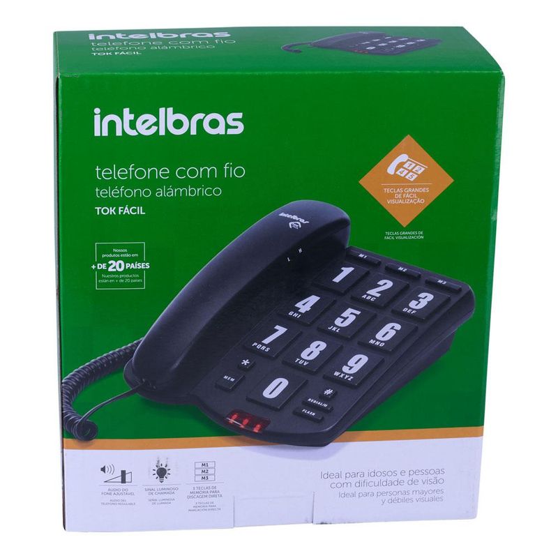 Fale à vontade. Com este telefone de mesa Tok Fácil Intelbras Grafite, você não ficará mais sem ter notícias daquelas pessoas queridas, que moram distante. Possui 2 níveis de volume da campainha, para que você escolha o que melhor convém ao seu ambiente, tem tecla para rediscagem e memória de até 3 números para discagem rápida. Perfeito também para uso em escritório, disponibiliza as teclas mute e flash, para transferências entre ramais.