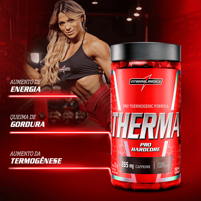 Seu maior aliado na queima de gordura! O Therma Pro Hardcore da Integralmédica fornece 285 mg de cafeína por dose. Acelerando o metabolismo e aumentando a queima de gordura.
